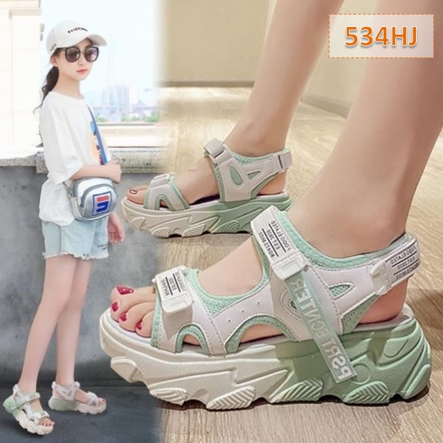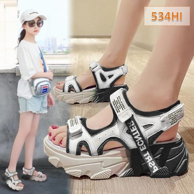 Sandal anak perempuan kekinian dengan desain trendy dan sol tebal yang nyaman dipakai seharian. Terbuat dari bahan sintetis berkualitas, ringan, empuk, dan anti slip sehingga aman untuk aktivitas harian anak.